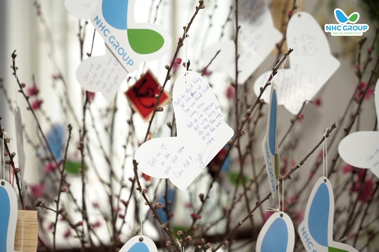 Một điểm nhấn đặc biệt của chương trình là “cây biết ơn” được trang trí sắc bích đào tươi thắm. Trên mỗi nhánh cây là những lá thư viết tay của các NHC-er – những lời tri ân chân thành gửi tới đồng nghiệp, Ban Lãnh đạo và chính bản thân mình.